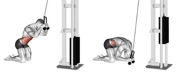 This exercise helps in developing upper and lower rectus abdominis. To perform cable crunches, you need to attach a rope to an overhead pulley. Grab each end of the rope and kneel down while holding the rope in front of your forehead.